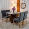 3{%%}DESCRIÇÂO{%%}Mesa Pedro Mel Vidro OFF 120×80 4 Cadeiras Genova Veludo Bege 512 Madeira Maciça Art Assento – Entregue Montada