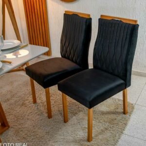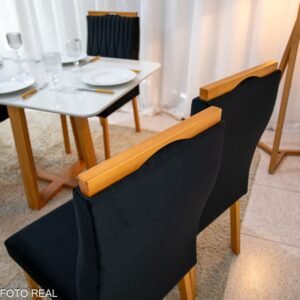 3{%%}DESCRIÇÂO{%%}Mesa de Jantar Pedro Mel Vidro OFF 120×80 4 Cadeiras Genova Veludo Preto 504 Madeira Maciça Art Assento – Entregue Montada