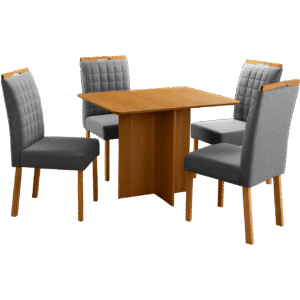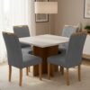 Mesa Pérola 120 Imbuia Mel (Tampo Viena s/vidro) + 4 Cadeiras Pandora 01 Veludo Cinza Grafite 414 – CARVALHO DECOR