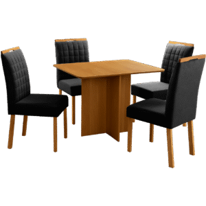 Mesa Pérola 120 Imbuia Mel (Tampo Viena s/vidro) + 4 Cadeiras Pandora 01 Veludo Preto 38 – CARVALHO DECOR