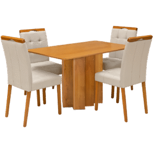 Mesa Recife 120 Cinamono Laminado com 4 Cadeiras Sophia Veludo Bege – CEL MÓVEIS + WM DECOR