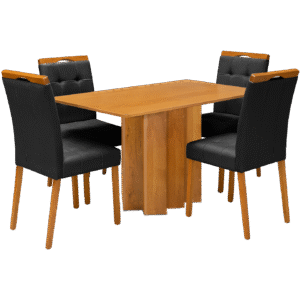 Mesa Recife 120 Cinamono Laminado com 4 Cadeiras Sophia Veludo Preto – CEL MÓVEIS + WM DECOR