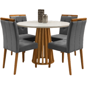 Mesa Redonda Berlim 100 Cinamono/Off White com 4 Cadeiras Sophia Veludo Cinza Grafite– CEL MÓVEIS + WM DECOR