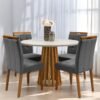 Mesa Redonda Berlim 100 Cinamono/Off White com 4 Cadeiras Sophia Veludo Marrom – CEL MÓVEIS + WM DECOR