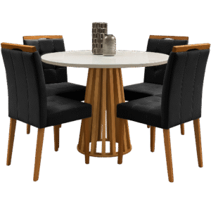 Mesa Redonda Berlim 100 Cinamono/Off White com 4 Cadeiras Sophia Veludo Preto – CEL MÓVEIS + WM DECOR