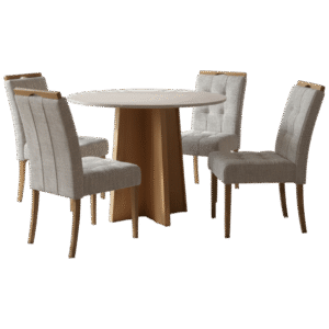 Mesa Redonda Celebrare 100 Amêndoa Clean/Off White com 4 Cadeiras Sophia Linho Cinza Prata 206 – LOPAS + WM DECOR