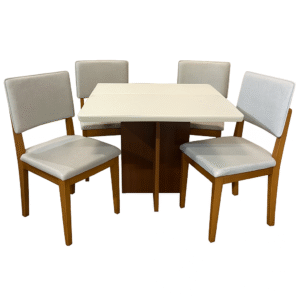 Mesa Salinas 120 Cinamomo/Off White com 4 Cadeiras Pérola Linho Cinza Prata – CEL MÓVEIS + DOBUÊ MOVELARIA