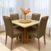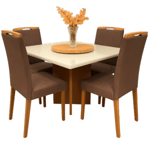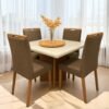 Mesa Salinas 120 Cinamomo/Off White com 4 Cadeiras Priscila Veludo Marrom 1014 – CEL MÓVEIS + CARVALHO DECOR