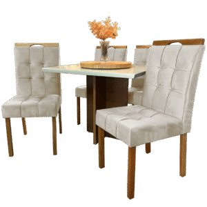 Mesa Salinas 120 Cinamomo/Off White com 4 Cadeiras Sophia Veludo Bege – CEL MÓVEIS + WM DECOR