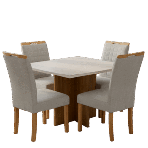 Mesa Salinas 120 Cinamomo/Off White com Cadeiras Pandora 01 Veludo Cinza Prata 127 – CEL MÓVEIS + CARVALHO DECOR