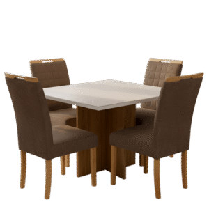 Mesa Salinas 120 Cinamomo/Off White com Cadeiras Pandora 01 Veludo Marrom 134 – CEL MÓVEIS + CARVALHO DECOR