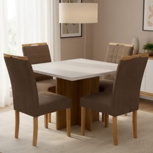 Mesa Salinas 120 Cinamomo/Off White com Cadeiras Pandora 01 Veludo Marrom 134 – CEL MÓVEIS + CARVALHO DECOR