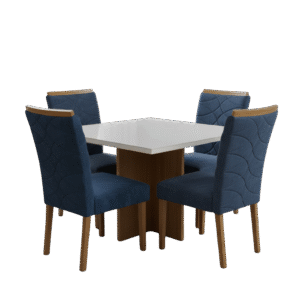 Mesa Salinas 90 Cinamomo/Off White com 4 Cadeiras Safira Veludo Azul – CEL MÓVEIS + CEL MÓVEIS