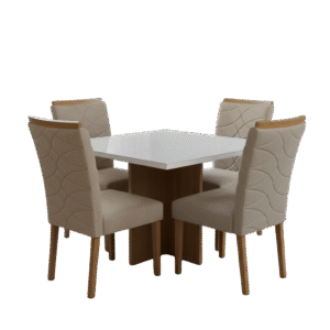 Mesa Salinas 90 Cinamomo/Off White com 4 Cadeiras Safira Veludo Bege – CEL MÓVEIS + WM DECOR