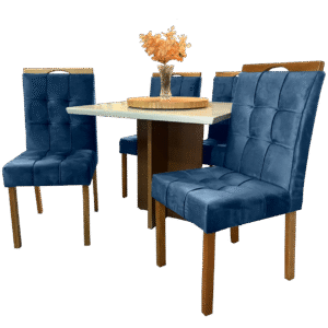 Mesa Salinas 90 Cinamomo/Off White com 4 Cadeiras Sophia Veludo Azul – CEL MÓVEIS + WM DECOR