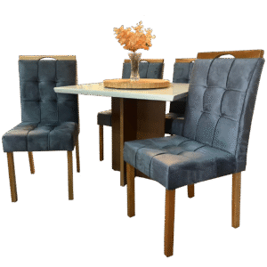 Mesa Salinas 90 Cinamomo/Off White com 4 Cadeiras Sophia Veludo Cinza Grafite – CEL MÓVEIS + WM DECOR