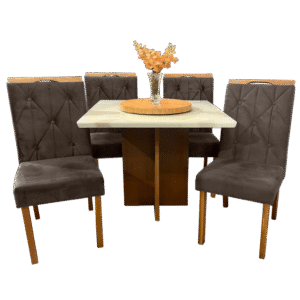 Mesa Salinas 90 Cinamomo/Off White com 4 Cadeiras Yasmim Veludo Marrom – CEL MÓVEIS + KM DECOR