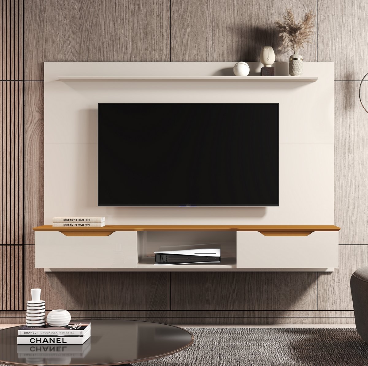 Painel até 65″ Studio Off White/Cedro – EDN MÓVEIS
