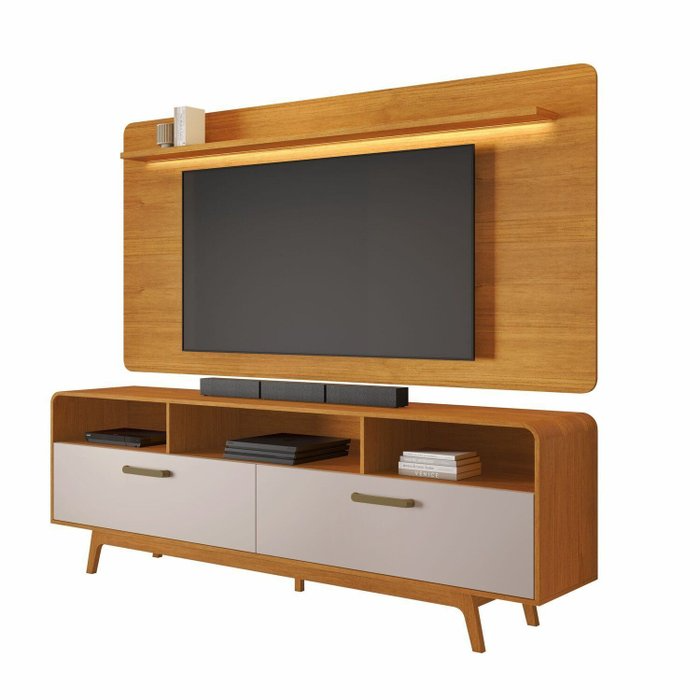 Painel até 70″ Cristal Cinamono + Rack Cristal Cinamono/Off White – JCM MOVELARIA