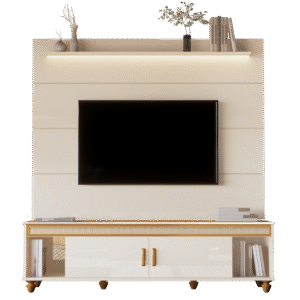 Painel até 75″ Bliss + Rack Comodoro 1.8 Off White/Cedro – EDN MÓVEIS