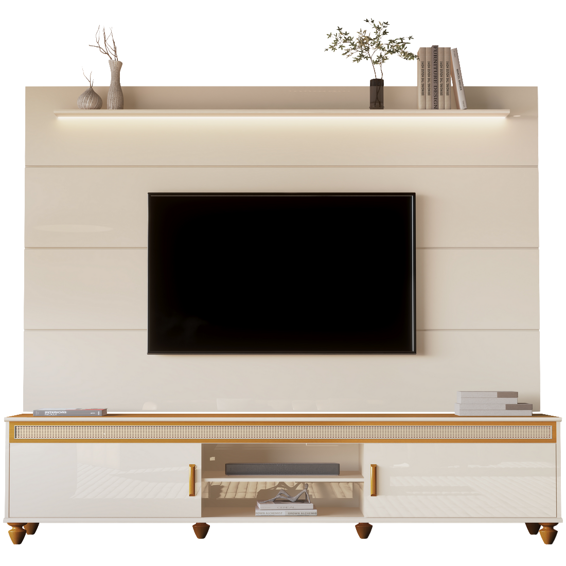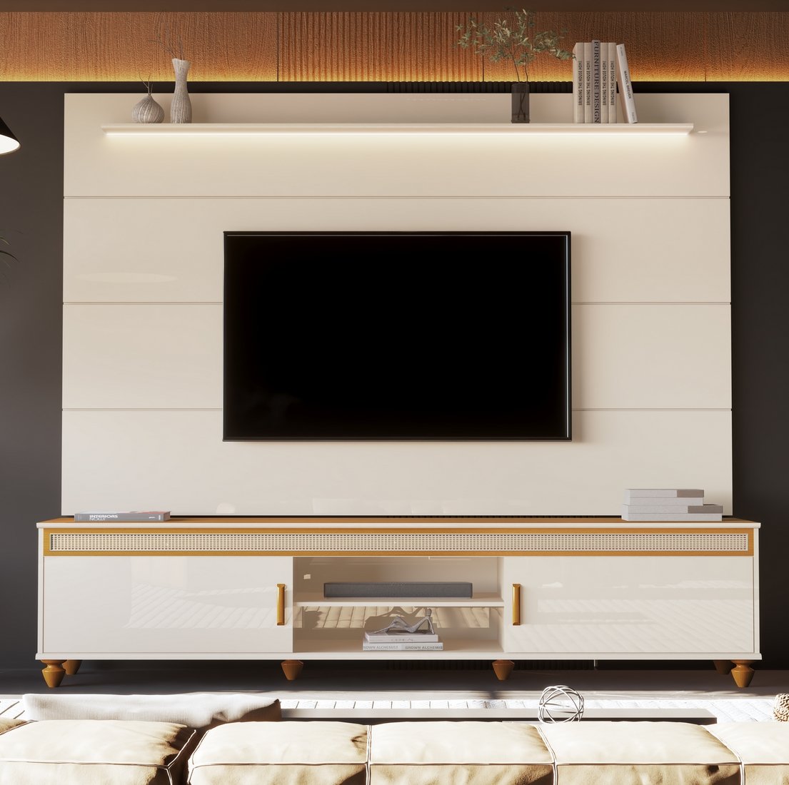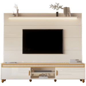Painel até 75″ Bliss + Rack Comodoro 2.18 Off White/Cedro – EDN MÓVEIS