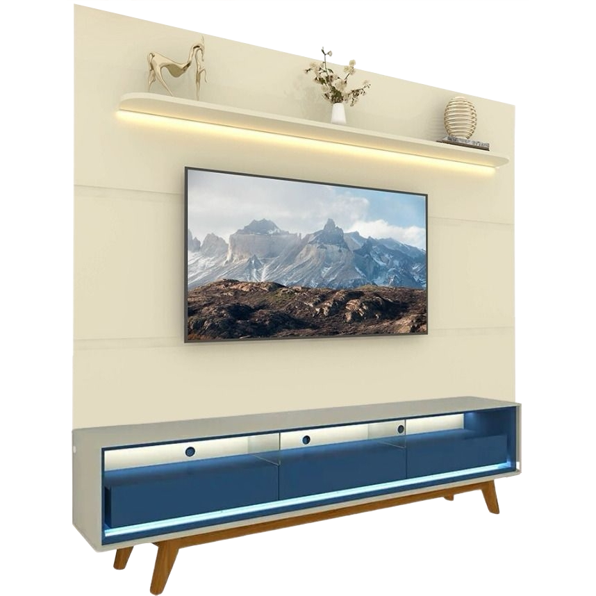 Painel Royal 220 Off White + Rack Requinte 212 Off White/Azul – GELIUS