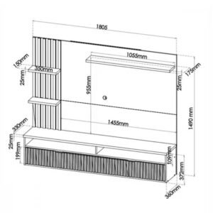 3{%%}Descrição{%%}Painel Aurora Larg. 1.80m Mel/Off Detalhe Ripado para TV até 65″ – Viero