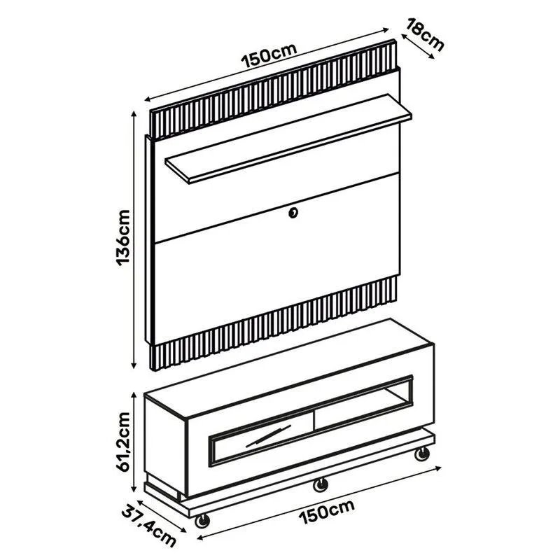 Painel + Bancada Vitti Preto/Demolição – DJ MÓVEIS