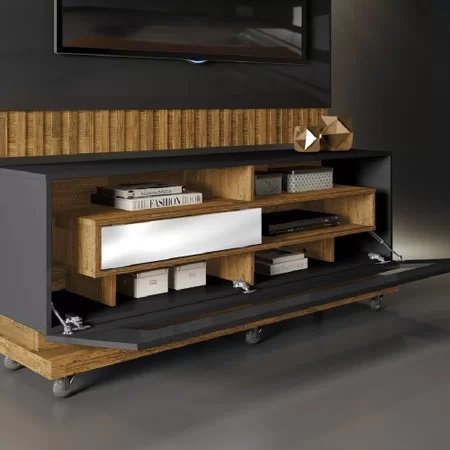 Painel + Bancada até 60″ Vitti Preto/Demolição – DJ MÓVEIS