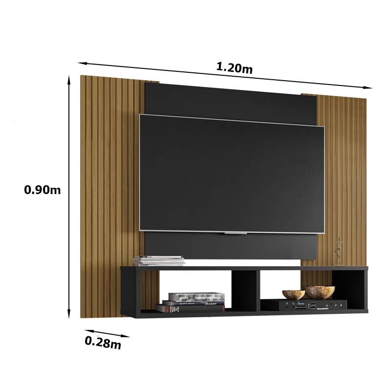 3{%%}Descrição#Montagem Painel{%%}Painel Navi Larg. 1.20m Preto Ripado para TV até 47″ – Bechara