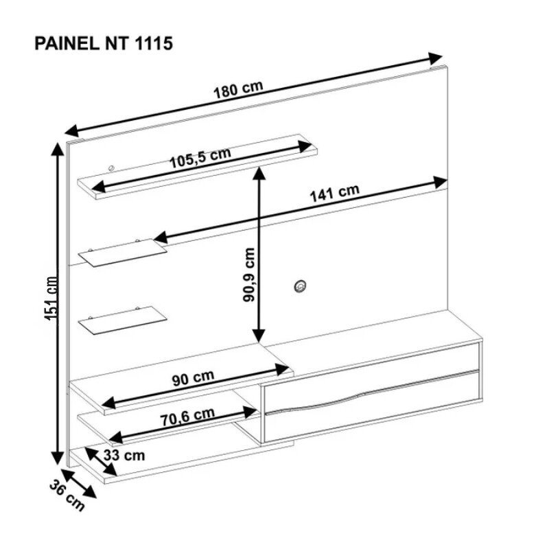 3{%%}Descrição{%%}Painel NT 1115 Off White/Frejó C/ Led TV até 60 Polegadas Larg. 1.80m – Notável