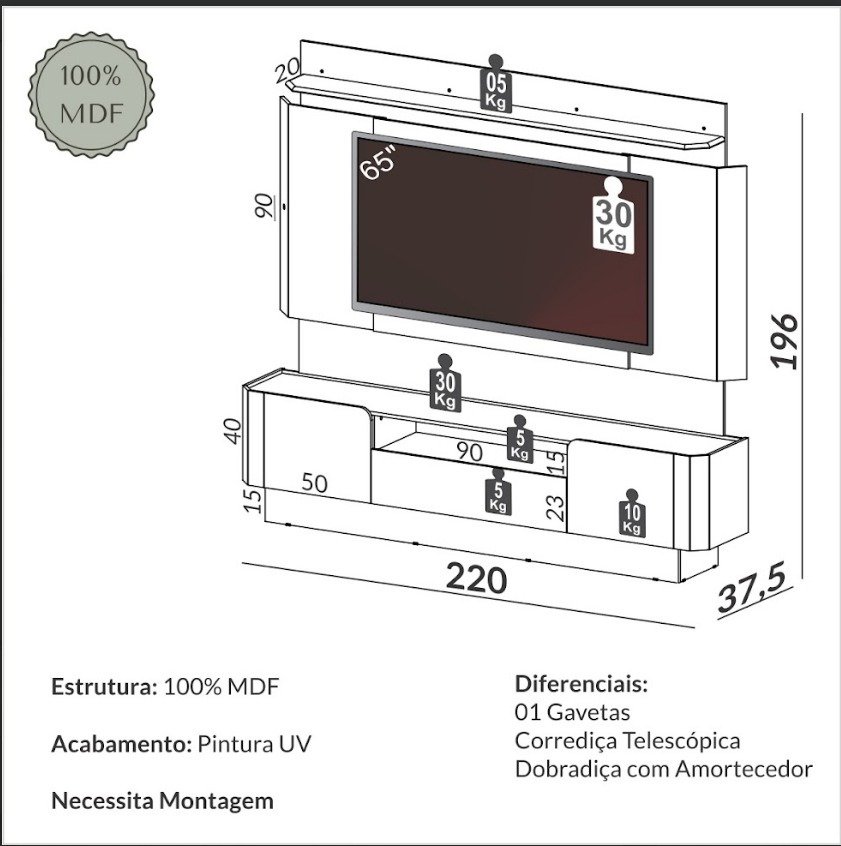 – Para TV até 65″