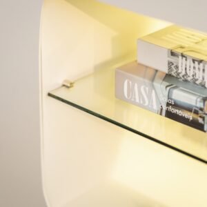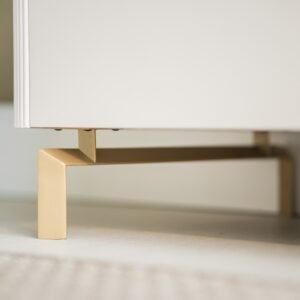 – Duas portas MDF 15 mm com dobradiças metálicas slow motion e detalhe chanfrado