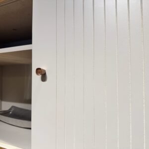 – Uma porta de correr MDF 15 mm com detalhes em frisos