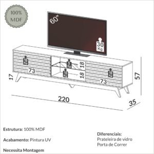 Rack até 60″ R515 Off White/Freijó – DALLA COSTA