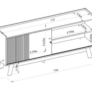 – Uma porta de correr MDF 15 mm em detalhes frisados e puxador na cor cobre