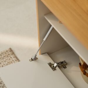– Portas basculantes com pistão à gás e dobradiças metálicas