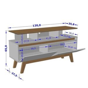 3{%%}Descrição{%%}Rack Bancada Rubi Larg. 1.20m Cinamomo/Off para TV até 50″ – Bechara