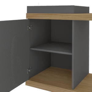 – Acabamento madeirado em pintura UV texturizada, Grafite em pintura UV acetinada, e Off White em pintura UV alto brilho