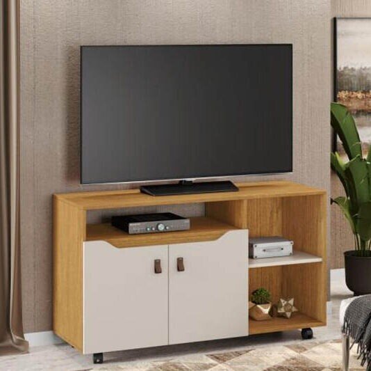 3{%%}Descrição#Vídeo{%%}Rack Seleto Larg. 1.21m Cinamomo/Off para TV até 49″ – JCM