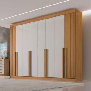 3{%%}Descrição{%%}Roupeiro Casal Daymond Cinamomo/Off 8 Portas 8 Gavetas Detalhe Ripado 100% MDF Larg. 2.75m – D’ Doro