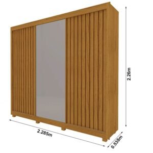 3{%%}Descrição{%%}Roupeiro Casal Royale Naturale 3 Portas Ripado C/ 1 Espelho Larg. 2.28m – Gelius