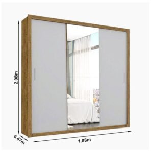 3{%%}Descrição{%%}Roupeiro Casal Veneza Cinamomo/Off 3 Portas 4 Gavetas C/ 1 Espelho Larg. 1.88m – Carioca