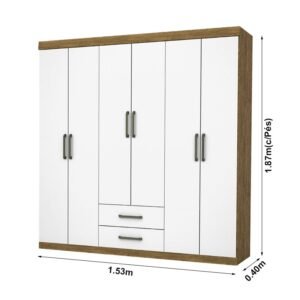 3{%%}Descrição{%%}Roupeiro Solteiro Áries Cinamomo/Branco 6 Portas 2 Gavetas C/Pés Larg. 1.53m – Carioca
