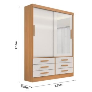3{%%}Descrição#Como Montar{%%}Roupeiro Solteiro Merídian Cinamomo/Off 2 portas c/ 1 Espelho 6 Gavetas Larg. 1.35m – D Doro