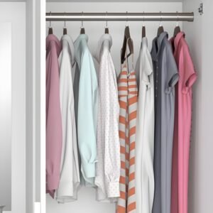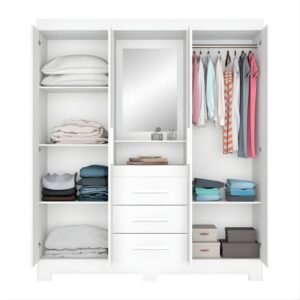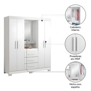 3{%%}Descrição{%%}Roupeiro Solteiro NT 5015 Larg. 1.61m Branco/Rosa 4 portas 3 Gavetas Flex C/Pés – Notável