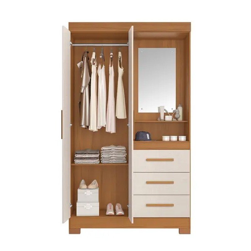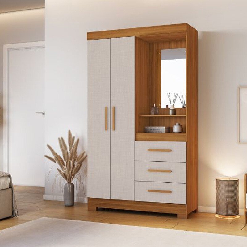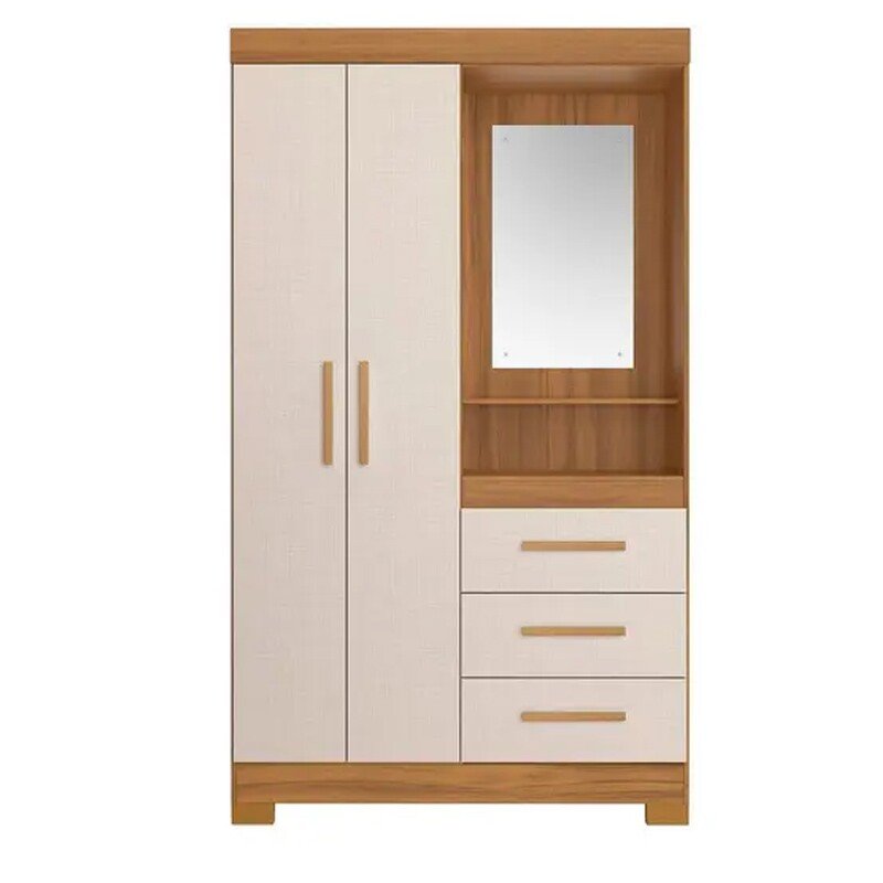 Roupeiro Solteiro NT 6020 Larg. 1.08m Freijo/Off 2 portas 3 Gavetas Flex C/Pés – Notável