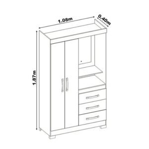 3{%%}Descrição{%%}Roupeiro Solteiro NT 6020 Larg. 1.08m Freijo/Off 2 portas 3 Gavetas Flex C/Pés – Notável