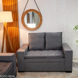 3{%%}Descrição{%%}Sofá 3 e 2 lugares França com Puff Veludo Cinza A15
