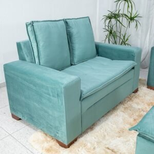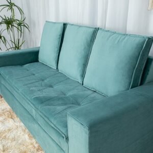 3{%%}Descrição{%%}Sofá 3 e 2 lugares França com Puff Veludo Verde A40 Larg. 1.86m